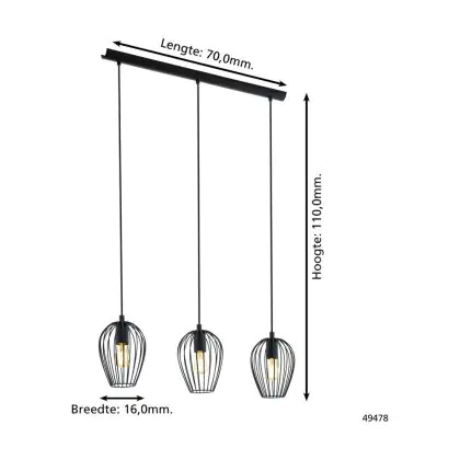 Eglo Pendant Newtown Steel Black | IP20 - Suitable for 3x E27
