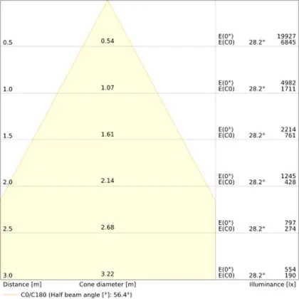 ![]() The colour code is a combination of colour rendering (CRI) and light colour (Kelvin). The first number indicates the colour rendering (1 = very poor colour rendering, 9 = maximum colour fastness). The second and third number contains the light colour. Example: the colour code 830 consists of good colour rendering (8) and warm white light (3000K). |