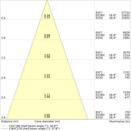 ![]() The colour code is a combination of colour rendering (CRI) and light colour (Kelvin). The first number indicates the colour rendering (1 = very poor colour rendering, 9 = maximum colour fastness). The second and third number contains the light colour. Example: the colour code 830 consists of good colour rendering (8) and warm white light (3000K). |