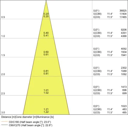 ![]() The colour code is a combination of colour rendering (CRI) and light colour (Kelvin). The first number indicates the colour rendering (1 = very poor colour rendering, 9 = maximum colour fastness). The second and third number contains the light colour. Example: the colour code 830 consists of good colour rendering (8) and warm white light (3000K). |
