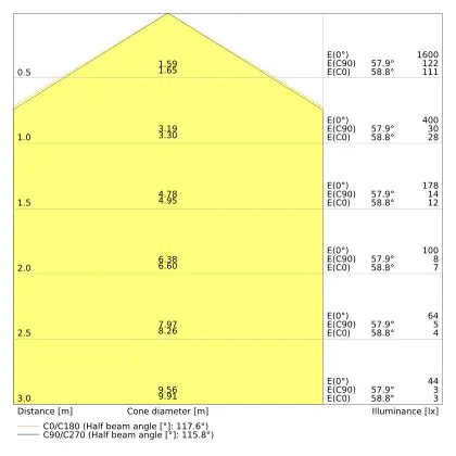 ![]() The colour code is a combination of colour rendering (CRI) and light colour (Kelvin). The first number indicates the colour rendering (1 = very poor colour rendering, 9 = maximum colour fastness). The second and third number contains the light colour. Example: the colour code 830 consists of good colour rendering (8) and warm white light (3000K). |