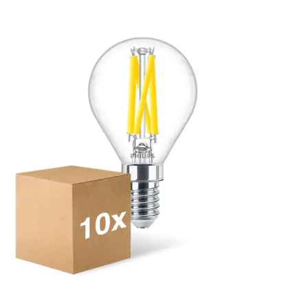 Multipack 10x Philips MASTER LED E14 Ball Filament Clear 5.9W 806lm - 922-927 Dim To Warm | Best Colour Rendering - Dimmable - Replaces 60W