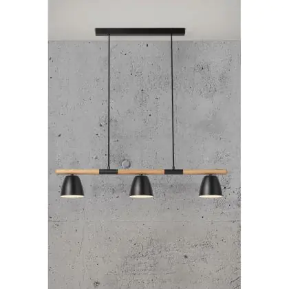 Nordlux Theo 3-Rail Pendant Metal and Wood Black | Suitable for 3x GU10