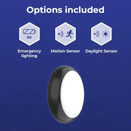 Noxion LED Bulkhead Pro V2 12/16/20W 2400lm - 830-840-865 CCT | 325mm - IP65 - Motion and Light Sensor - Emergency 3H + Ring Black