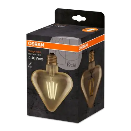 Osram Vintage 1906 LED E27 Heart Filament Gold 4.5W 470lm - 825 Extra Warm White | Replaces 40W